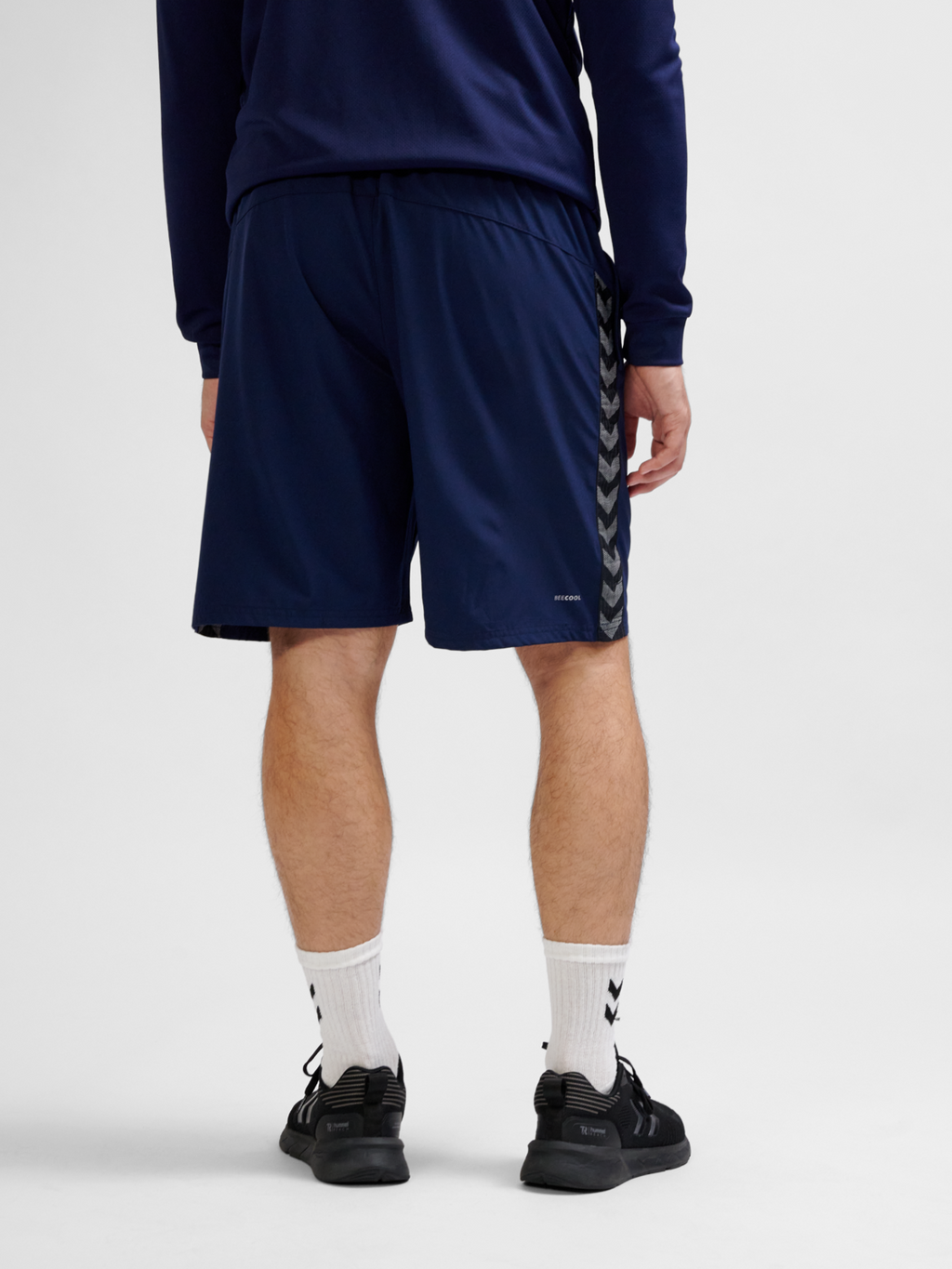 The adjustable drawstring waist ensures a secure fit, while zip side pockets provide practical storage. Finished with chevron tape down the sides and a printed Hummel® logo, these shorts deliver a sleek, athletic look with technical functionality. Whether you're on the pitch or in the gym, they’re built to move with you.