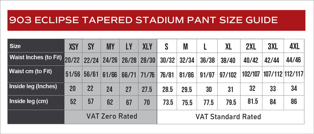 The Chadwicks 903 - Eclipse Tapered Fit Training Pant offers a modern twist on the classic stadium pant. With a slim, tapered fit and technical stretch fabric, these pants provide both style and comfort. The concealed side pockets, soft jersey lining, and lockable ankle zips add practicality to this functional training pant. Made with 160gsm full dull polyester for a lightweight and durable design.