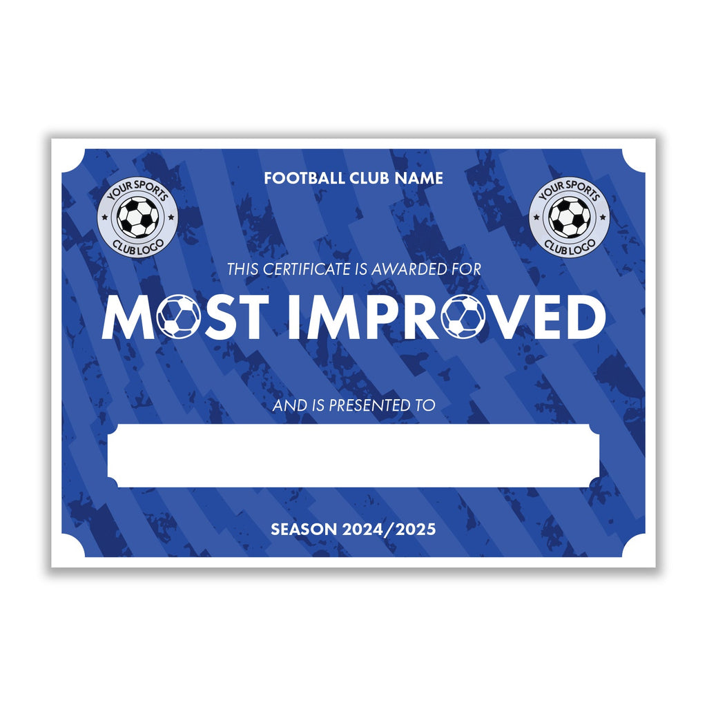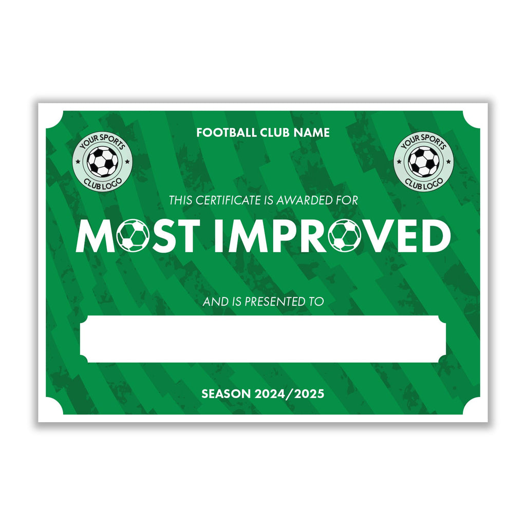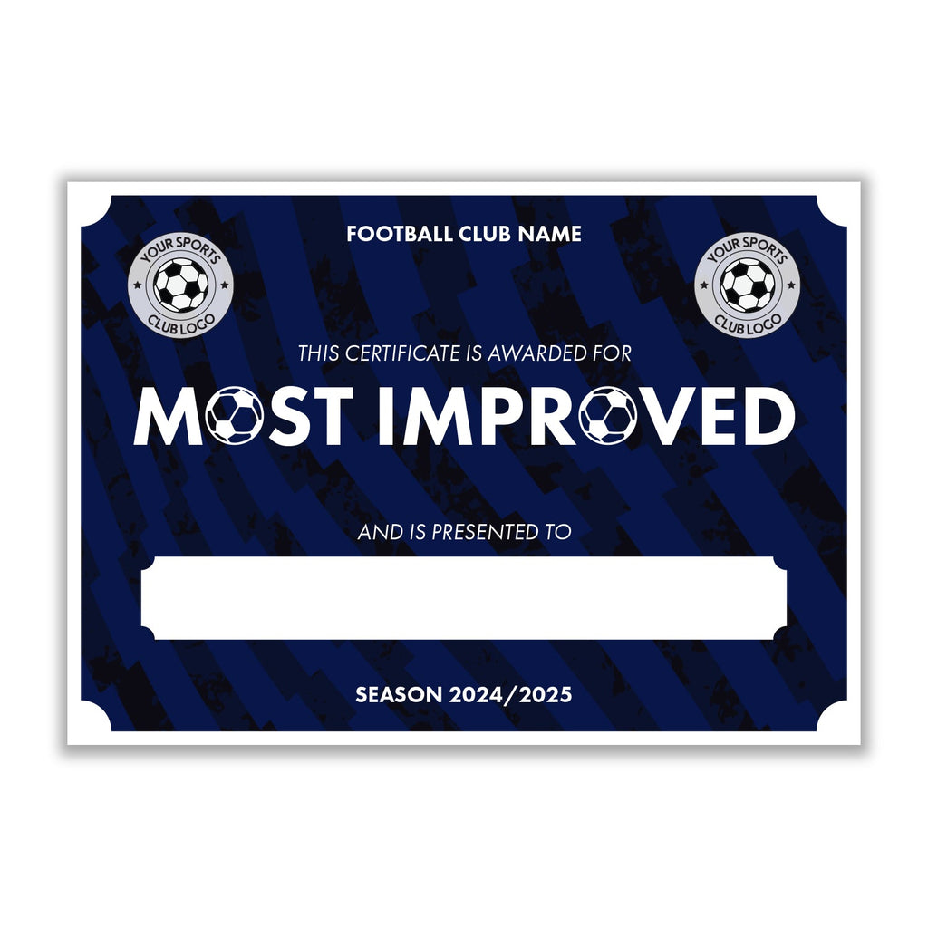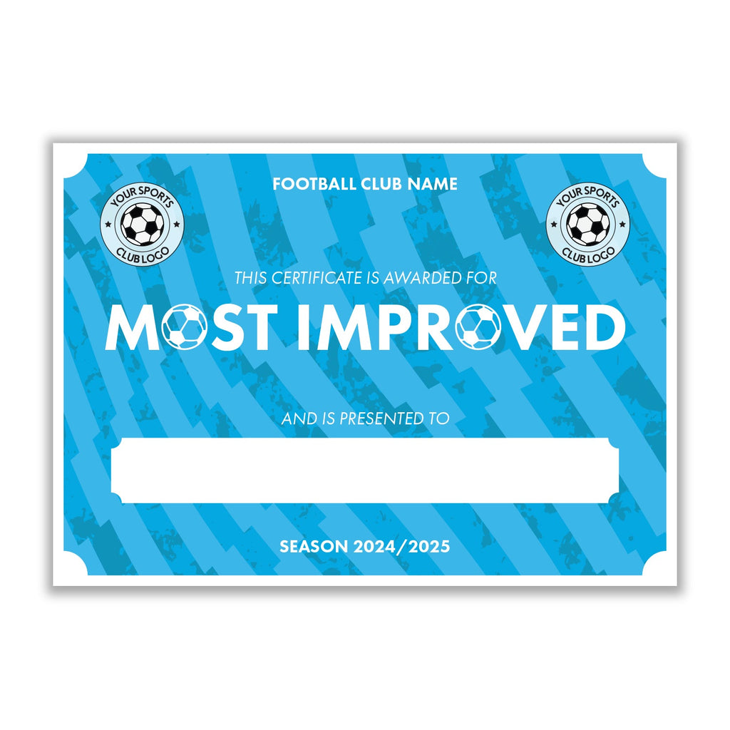 Personalised Football Club Certificates - Most Improved Player Custom Design (9 Colours)