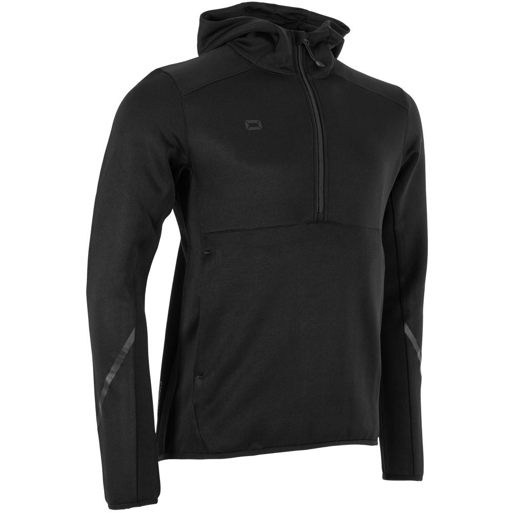 This Hooded Half Zip Top is part of the Stanno Plaza team line. The recycled top is made of a comfortable, soft fabric with a light stretch and has a high-waisted collar. The top has an SBS zipper in the middle to just below the chest. There are also pockets at the front and the back of the top is a bit longer. Also, the Plaza Hooded Half Zip Top is easy to print.