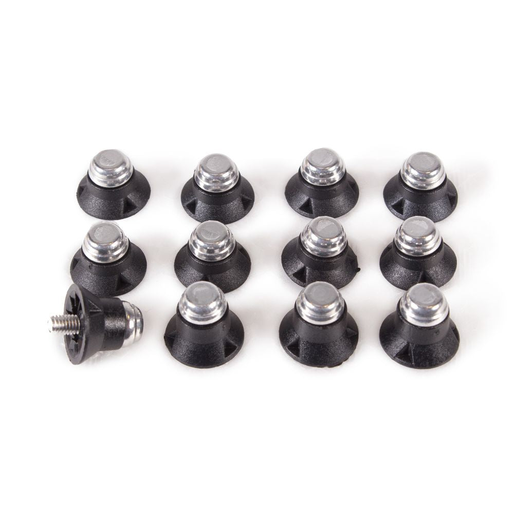 Studs made of aluminum and nylon. The set consists of 8x13 mm + 4x16 mm studs. Suitable for shoes with screw studs for excellent grip in the ground.
