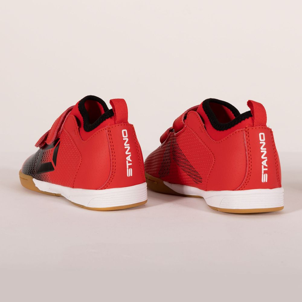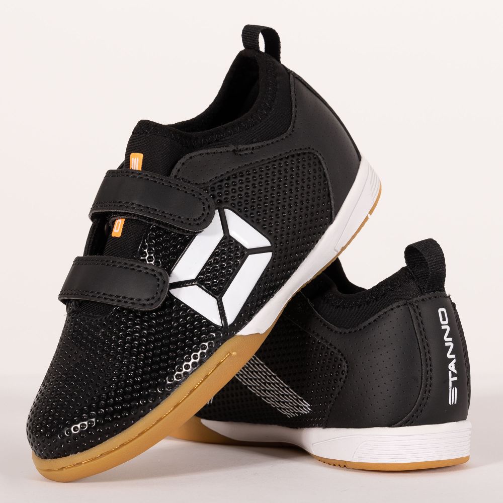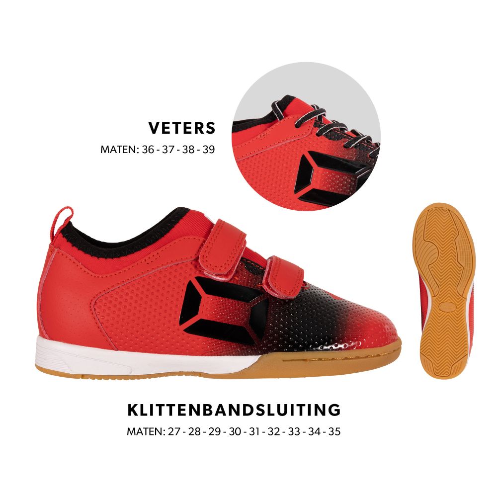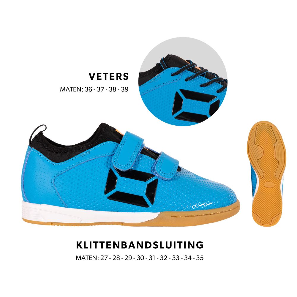 Stanno wants athletes to experience as many moments of glory as possible. With the Stanno Vulture JR IN, you have the perfect indoor footwear to perform well in the hall. For a wonderfully connected feeling, the indoor sports shoe is equipped with a neoprene sock. In addition, this children's shoe has a durable, flexible sole made of natural rubber that is combined with a shock-absorbing midsole. This gives optimal grip and cushioning in the hall! The children's shoe has a lightweight synthetic upper that feels comfortable on the foot, a hardened heel cap for extra stability and a stitched nose for extra strength. Up to size 35, the shoe is equipped with a Velcro closure, and from size 36 with laces.